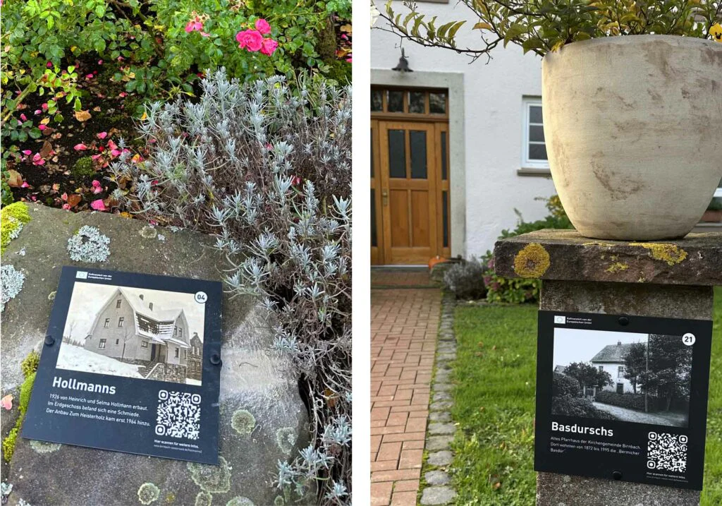 Im Rahmen des Projekts „Birnbacher Hausschilder“ übernahm Gipfelgold die Gestaltung und Realisation der Infoschilder sowie der dazugehörigen digitalen Plattform Spaziergänger, die auf dem Historischen Rundweg in Birnbach unterwegs sind, die Möglichkeit, den QR-Code auf den Infoschildern zu scannen und so weitere Einblicke in das Leben der ehemaligen Erbauer und jetzigen Bewohner der Gebäude zu erhalten. Auf der Website finden sich neben einer interaktiven Karte des Ortes auch historisches Hintergrundwissen.