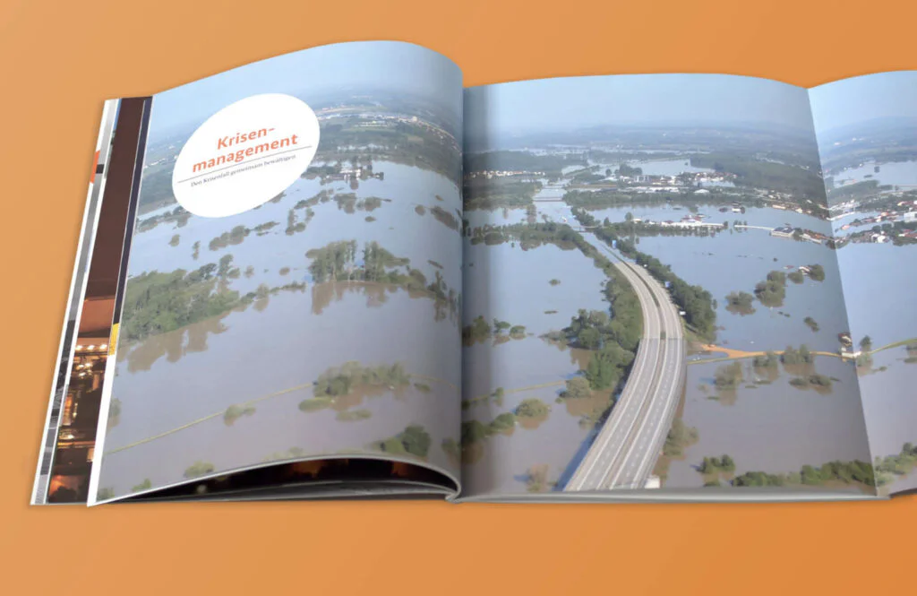 Der große Auftragsumfang von 2013 bis 2022 führte zu nennenswerten Ergebnissen, die sowohl in der Gestaltung als auch in der Wirkung Kunden und Rezipienten beeindruckten. Neben Corporate Design, Co-Brandings und der Entwicklung des Logos „NINA“ waren wir auch für die Designentwicklung von Broschüren, Flyern etc. zuständig. Bei der hier präsentierten Leistungsbroschüre haben wir auf große Bilder gesetzt, die schnell wesentliche Inhalte und Aufgaben vermitteln.